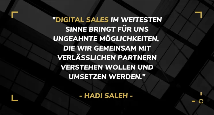 Digital Sales im weitesten Sinne birgt für uns ungeahnte Möglichkeiten, die wir gemeinsam mit verlässlichen Partnern besser verstehen wollen und umsetzen werden.