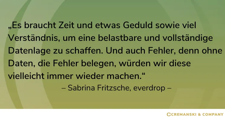 Daten schaffen Klarheit und das ist in vielerlei Hinsicht wertvoll. Sie sind wertvoll, um kluge Entscheidungen zu treffen. Sie dienen uns bei der Steuerung, schärfen den Fokus und unterstützen uns bei strategischen Überlegungen. Sie zeigen Schwachstellen im vertrieblichen Prozess und helfen uns, zielgerichtet zu optimieren. Uns bei everdrop helfen Daten vor allem dabei, zu lernen und zu verstehen, Chancen zu erkennen und Priorisierungen festzulegen. Wir erkennen, wann wir welches Produkt launchen und pushen sollten - und wann nicht. Sie geben uns Sicherheit - zum Beispiel wenn wir erkennen, dass wir gut mit etablierten Mitbewerbern im Markt mithalten können. Und sie helfen uns dabei, Zeit zu gewinnen, indem wir Entscheidungen schneller treffen und Handlungen in Gang setzen können.
