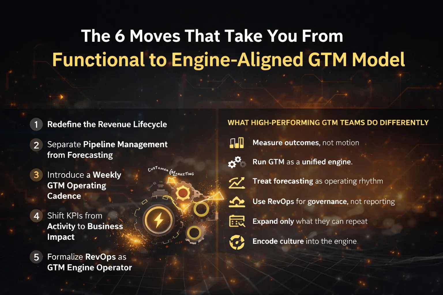 Most GTM teams operate well—just not together. This piece breaks down six structural moves that turn functional excellence into a unified, scalable revenue engine.